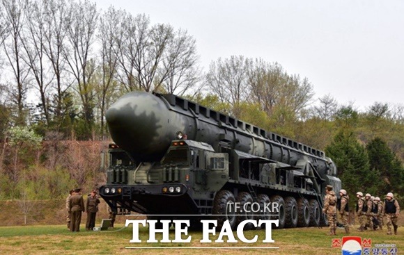 북한이 19일 새벽 동해쪽으로 탄도미사일 2발을 발사했다. 사진은 북한군이 대륙간탄도미사일(ICBM)인 화성포-18 ICBM 발사를 위해 대기하고 있는 모습. /조선중앙통신 |