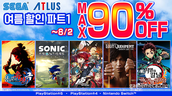 세가는 19일 PS 스토어와 닌텐도 e숍에서 판매되는 일부 PS5, PS4, 닌텐도 스위치 타이틀을 기간 한정으로 저렴하게 판매하는 ‘세가(SEGA) 여름 할인 파트1’을 시작했다.