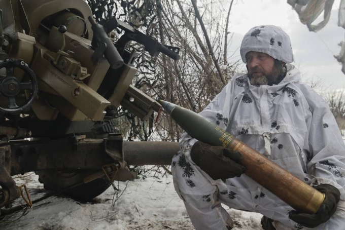 [바흐무트=AP/뉴시스] 15일(현지시간) 우크라이나 도네츠크주 바흐무트 인근 전선에서 우크라이나 병사가 러시아 진지를 향해 포격을 준비하고 있다. 2023.02.16.(사진은 기사 본문과 관련 없음) |