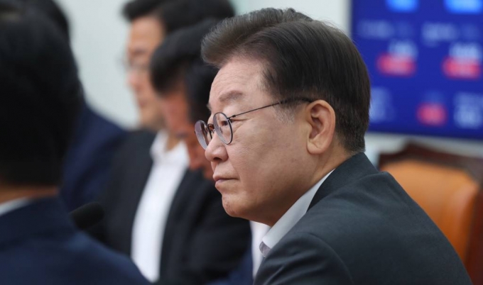 [서울=뉴시스] 추상철 기자 = 이재명 더불어민주당 대표가 31일 오전 서울 여의도 국회에서 열린 최고위원회의에서 박광온 원내대표의 발언을 듣고 있다. 2023.07.31. |