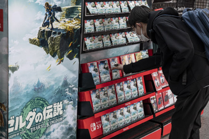 지난 5월 12일 일본의 한 매장에서 한 남성이 닌텐도 게임 신작을 고르고 있다. (사진=AFP) |