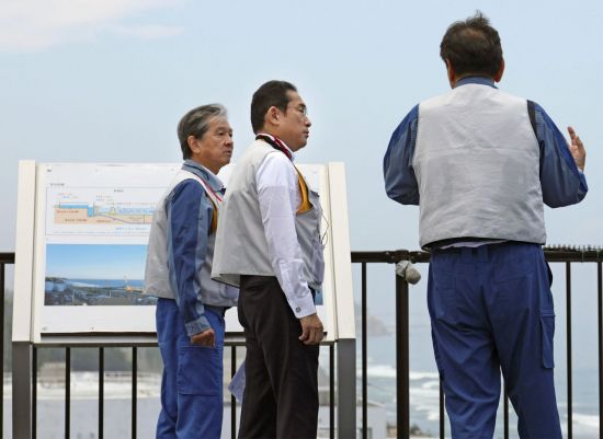 기시다 후미오 일본 총리가 오염수(일본 정부 명칭 '처리수') 해양 방류를 앞둔 20일 후쿠시마 제1원자력발전소를 방문, 설명을 듣고 있다. [이미지출처=연합뉴스] |