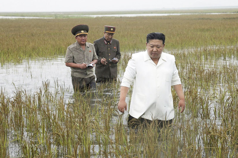 김정은 북한 국무위원장이 침수 피해 복구 현장을 찾아