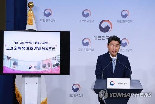 이 부총리는 이날 정부서울청사에서 '교권 회복 및 보호 강화 종합방안'을 발표한 뒤 중대한 교육활동 침해에 대한 학생부 기재에 대해 "꼭 필요하다"며 이같이 말했다.