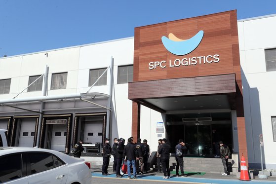 지난해 10월 끼임 사망 사고가 일어난 경기도 평택시 SPL 제빵공장 전경. 같은 달 24일 합동 감식을 위해 고용노동부와 경찰, 국립과학수사연구원 관계자들이 들어가고 있다. 연합뉴스 |