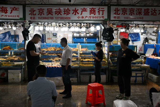 일본이 후쿠시마 원전 오염수를 방류한 지난 24일(현지시간) 중국 베이징의 한 수산시장에서 상인과 고객들이 거래 중이다. (사진=AFP) |