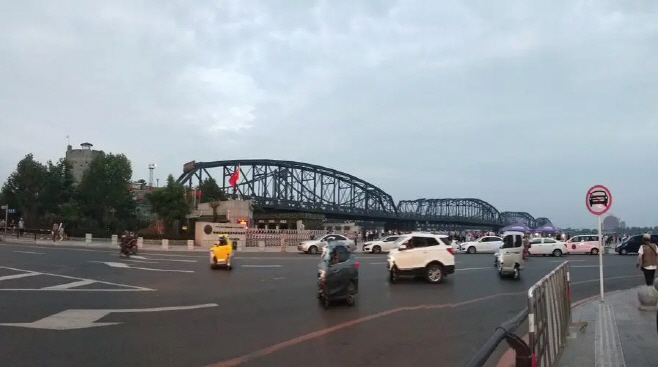 북한 인력 400여명이 28일 오전 신의주로 떠나기에 앞서 1주일여 머물렀던 랴오닝성 단둥 시내의 북중 국경 모습. 앞으로 귀국하는 북한 인력이 많이 집결할 것으로 전망되고 있다/검색엔진 바이두(百度). |
