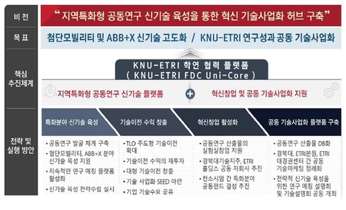 (대구=연합뉴스) 류성무 기자 = 대구시와 경북대학교, 한국전자통신연구원(ETRI) 컨소시엄이 과학기술정보통신부 '학·연 협력 플랫폼 구축 시범사업' 기관에 선정됐다고 대구시가 29일 밝혔다.