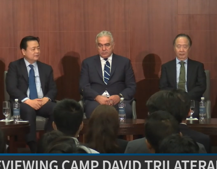 한·미·일 정상회담에 대한 평가를 주제로 진행된 이날 대담에는 조현동 주미 한국대사, 도미타 고지 주미 일본대사도 함께 했다.