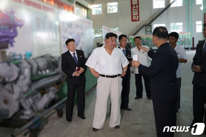 북한 김정은 국무위원장이 배 엔진을 제작하는 북중기계연합기업소를 찾아 '선박공업 발전' 및 '해군무력 강화'를 강조하며 이를 위한 '혁명적 투쟁 방침'을 제시했다고 3일 노동당 기관지 노동신문이 보도했다./ 평양 노동신문=뉴스1 |