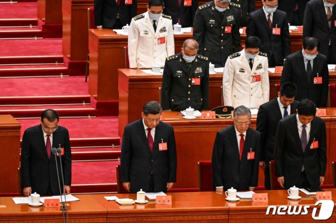 (베이징 AFP=뉴스1) 우동명 기자 = 시진핑 중국 국가주석이 16일 (현지시간) 베이징 인민대회당에서 열린 제20차 중국 공산당 전국대표대회(당 대회) 개막식서 리커창 총리, 후진타오 전 주석, 리잔수 전인대 상무위원장과 묵념을 하고 있다. ⓒ AFP=뉴스1 Copyright (C) 뉴스1. All rights reserved. 무단 전재 및 재배포 금지. |