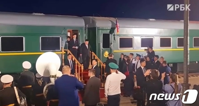 러시아를 방문한 김정은 북한 노동당 총비서의 모습이 공개됐다.(러시아 매체 RBK 갈무리) |