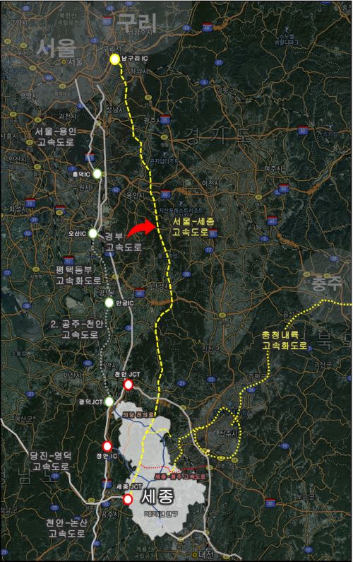 서울~세종 고속도로는 최고 시속이 국내에서 가장 빠른 시속 140km로 설계돼 세종~구리 구간이 개통되면 서울~세종 통행 시간이 현재 108분에서 74분으로 약 30분 단축되며, 경부고속도로 통행량의 12%(일 평균 1만 4000대~2만5000대), 중부고속도로 통행량의 20%(1만7000대) 안팎을 흡수한다.