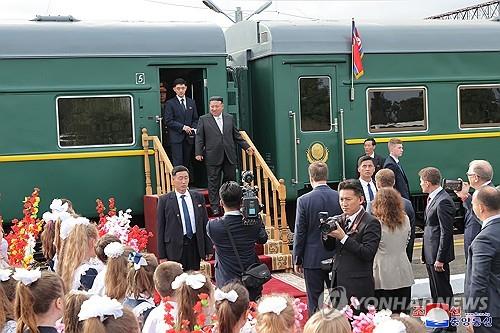 (블라디보스토크=연합뉴스) 최인영 최수호 특파원 = 김정은 북한 국무위원장이 블라디미르 푸틴 러시아 대통령과의 정상회담 등 방러 일정을 이어가는 가운데 숙박은 북한에서 타고 온 전용 열차에서만 해결 중인 것으로 알려졌다.