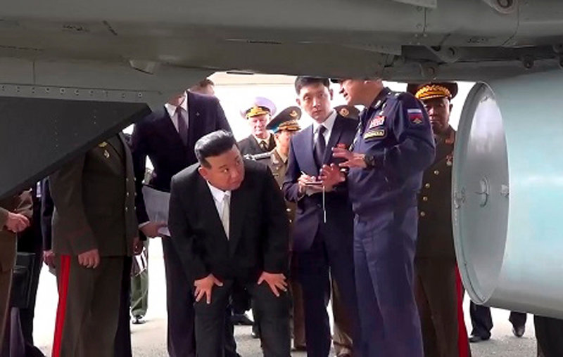 김 위원장은 세르게이 쇼이구 러시아 국방장관 등과 함께 블라디보스토크 국제공항 인근 크네비치 군비행장을 찾아 미그-31 전투기에 장착된 극초음속 미사일 ‘킨잘’과 전략폭격기 등을 둘러봤다. 러시아어로 ‘단검’이란 뜻의 킨잘은 블라디미르 푸틴 러시아 대통령이 “요격 불가”라고 자랑한 최첨단 무기로 우크라이나 공습에도 잇달아 사용됐다. 핵탄두도 장착할 수 있고, 최대 음속의 10배 이상으로 2000∼3000km를 날아간다. 김 위원장은 허리를 굽혀 킨잘을 가까이서 살펴보고, 미그-31의 기수를 손으로 만져보기도 했다. 우리 군 당국자는 “북한이 킨잘의 기술을 받아서 기습 핵타격용 극초음속미사일의 성능 개량이나 공대지 발사용 개조를 시도할 수 있다”고 말했다.