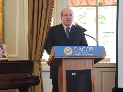 워싱턴서 열린 대담 행사에서 강연하는 로렌스 펙 고문 |