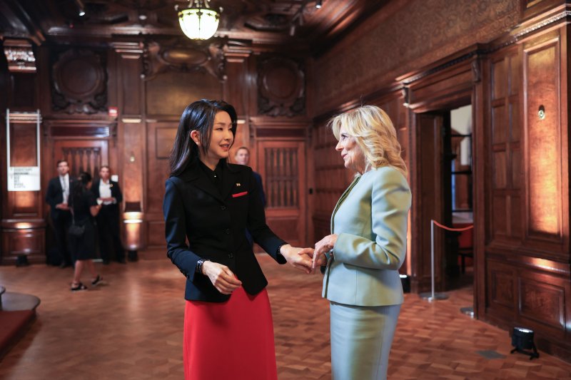 김 여사는 최근 코로나19 확진 판정을 받고 회복한 질 바이든 여사의 안부를 묻는 한편, 역사적인 카네기 저택에 있는 스미소니언 디자인박물관으로 초청해준 데 대해 감사를 전했다.