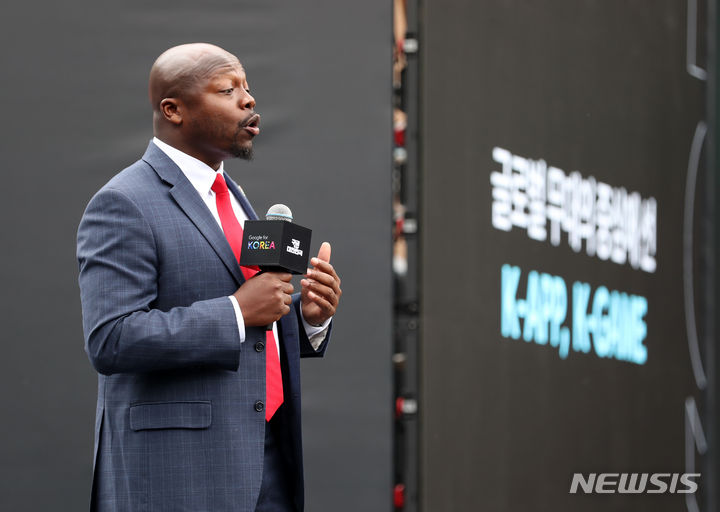 [서울=뉴시스] 김명년 기자 = 윌슨 화이트 구글 부사장이 21일 오후 서울 중구 신라호텔 영빈관에서 열린 'Google for Korea 2023' 에서 축사를 하고 있다. 2023.09.21. kmn@newsis.com |