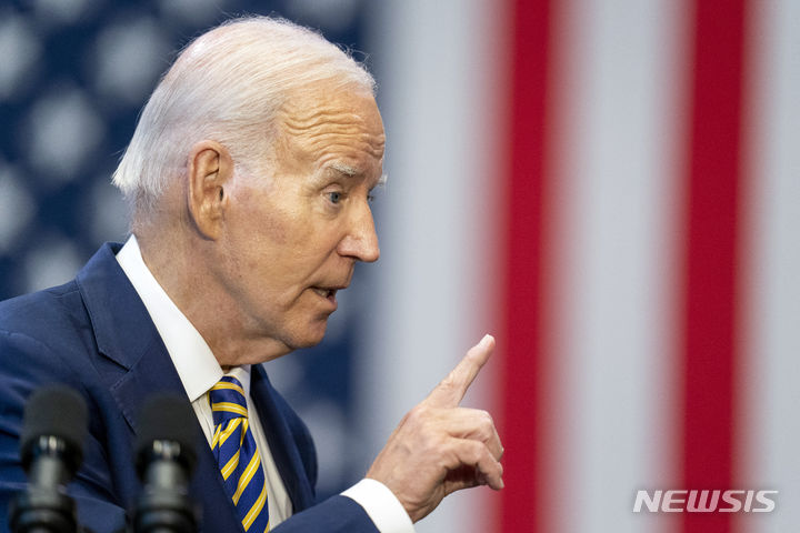 [라르고=AP/뉴시스]미국 정부가 반도체법(CHIPS and Science Act)의 수혜를 받는 기업이 중국 등에서 생산능력을 5% 이상 확장하지 못하도록 하는 내용 등이 담긴 '가드레일'(안전장치) 22일(현지시간) 규정을 확정했다. 사진은 조 바이든 미국 대통령이 지난 14일 미 메릴랜드주 라르고에 있는 프린스조지 커뮤니티 칼리지에서 경제 관련 연설을 하고 있는 모습. 2023.09.22 |
