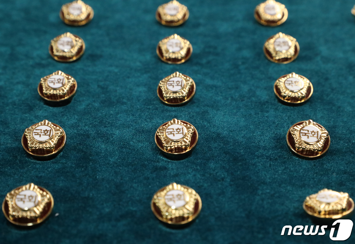 4·15 총선을 이틀 앞둔 13일 서울 여의도 국회 사무처가 제21대 국회의원들에게 지급될 배지를 공개하고 있다. 2020.4.13/뉴스1 ⓒ News1 박세연 기자