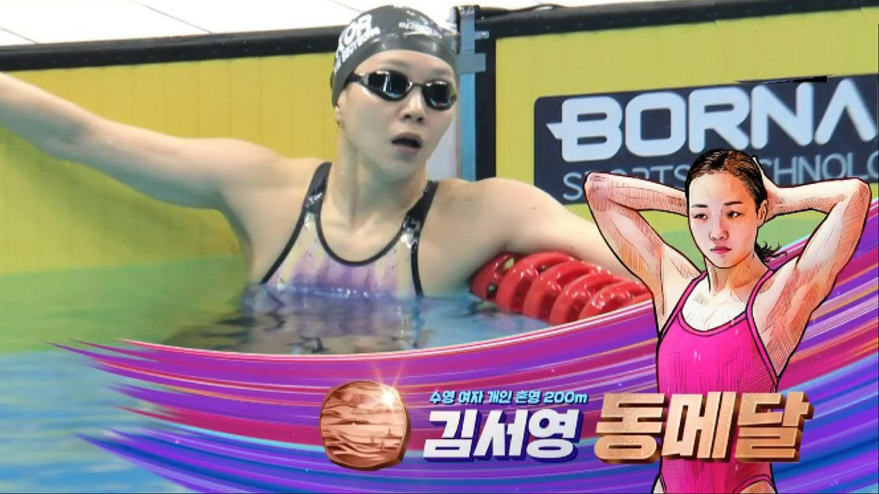 김서영(왼쪽)이 25일 중국 항저우 올림픽 스포츠센터 수영장에서 열린 2022 항저우 아시안게임 수영 이틀째, 여자 개인 혼영 200m 예선에서 스타트 하고 있다.