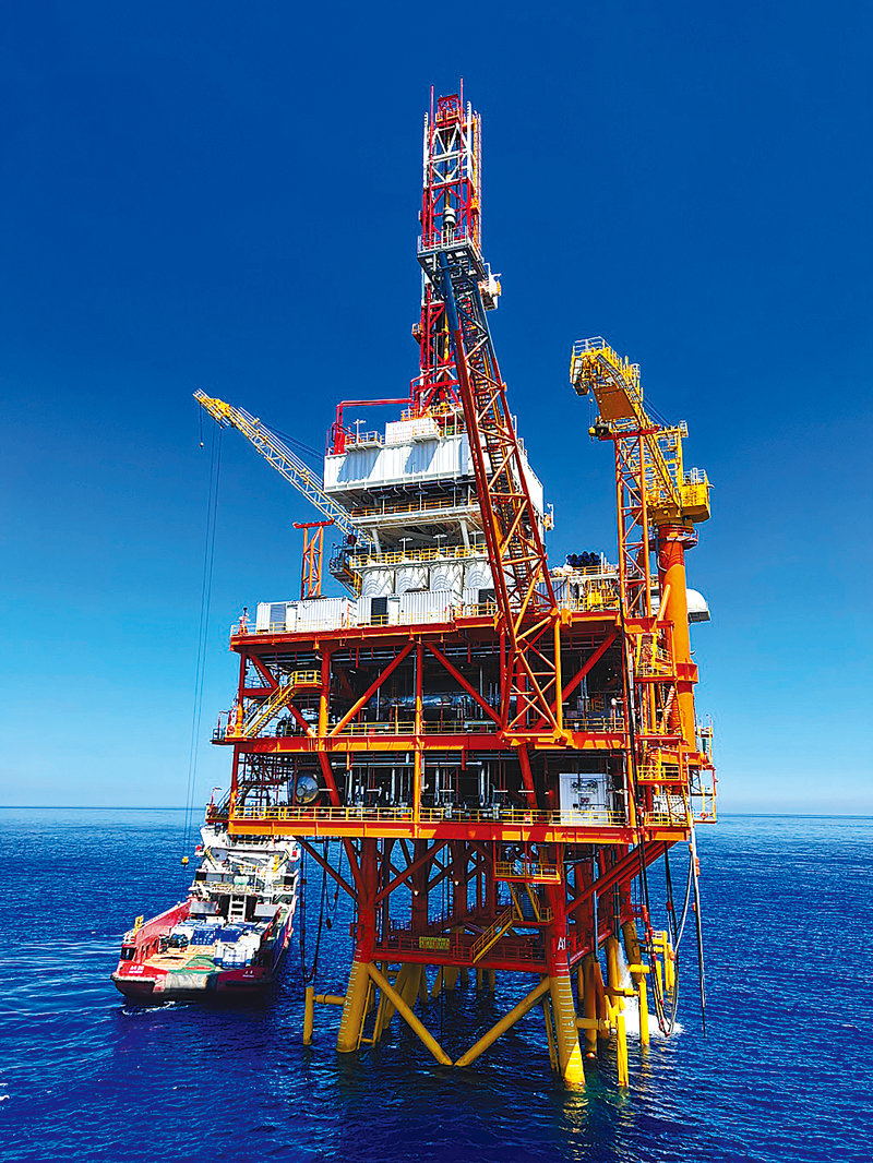 SK어스온이 남중국해 17/03 광구에 설치해 이달부터 원유를 생산하고 있는 플랫폼의 모습. SK어스온 제공 |
