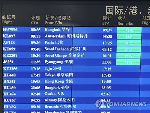 베이징공항 전광판에 뜬 고려항공 여객기 정보 |