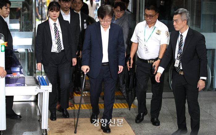 이날 이 대표는 단식으로 입원했던 서울 중랑구 녹색병원에서 법원으로 이동했다. 국정 쇄신과 내각 총사퇴를 요구하며 지난달 31일 단식에 돌입한 이 대표는 지난 23일 단식을 중단하고 이날 법정에 나왔다.