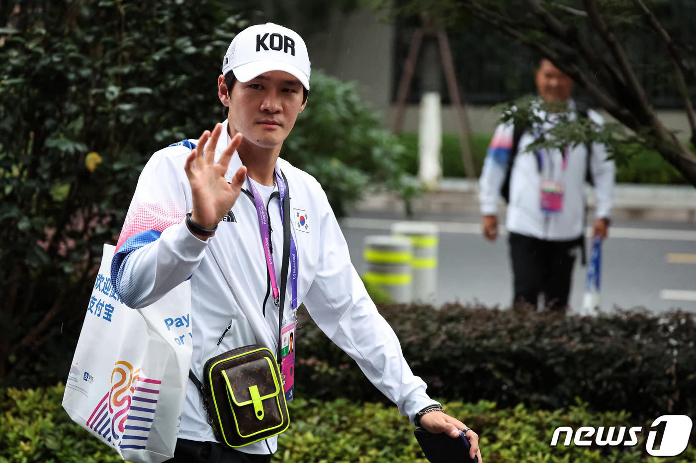 테니스 국가대표 권순우가 20일 중국 항저우 아시안게임 선수촌에 들어서고 있다. 2023.9.20/뉴스1 ⓒ News1 유승관 기자 |
