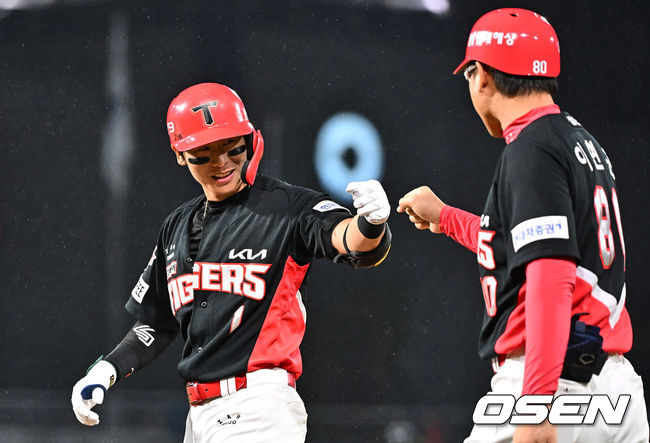 KIA 타이거즈 박찬호가 7회초 1사 2,3루 1타점 적시타를 치고 하이파이브를 하고 있다. 2023.09.26 / foto0307@osen.co.kr