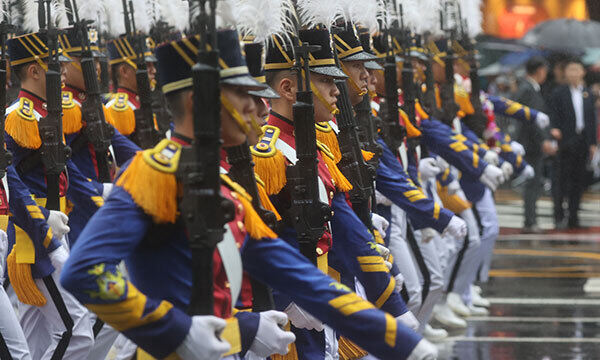 건군 75주년 국군의 날 기념행사가 열린 26일 오후 군 장병들이 서울 중구 세종대로에서 시가 행진을 하고 있다. 연합뉴스 |