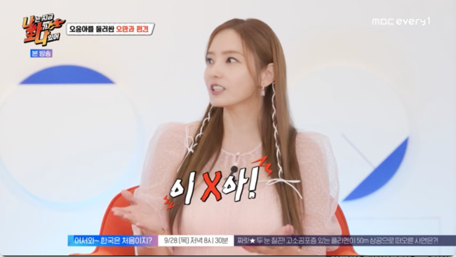 한채영은 이를 공감하며 과거 촬영 현장에서 나이 드신 감독님이 현장에서 욕하는 경우가 많았다고 밝혔다. 남자는 XX, 여자는 이 X아라고 불렀다고. 한채영은 감독님한테 ‘제 이름이 ‘이 X아’인줄 알았어요’라고 받아쳤다고 밝혀 모두의 감탄을 자아냈다.
