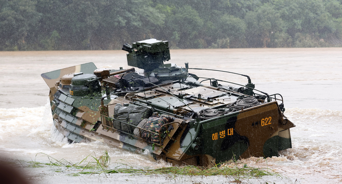 26일 경북소방본부와 해양경찰 등에 따르면 이날 오후 3시쯤 해병대 1사단이 있는 포항시 남구 도구해안 인근에서 시험 운용 중이던 신형 상륙돌격장갑차(KAAV-II) 1대가 침수됐다. 이 장갑차는 해안에서 1㎞ 정도 떨어진 바다에서 성능 시험을 하던 중 알 수 없는 이유로 바다에 가라앉은 것으로 알려졌다.