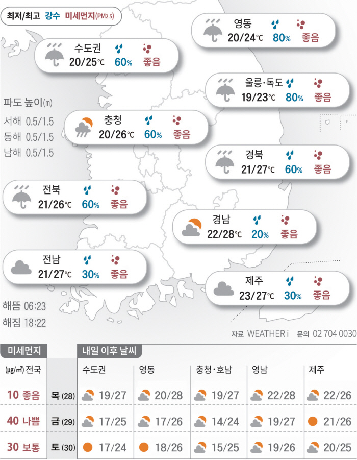 2023년 9월 27일 중부 오후까지 빗방울[오늘의 날씨]