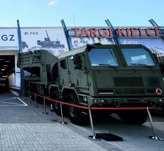 폴란드 키엘체에서 지난 5~8일 열린 국제방위산업전시회 전시장 입구에 한화에어로스페이스의 다연장로켓 천무가 미국 하이마스 폴란드형과 나란히 전시돼 있다. |