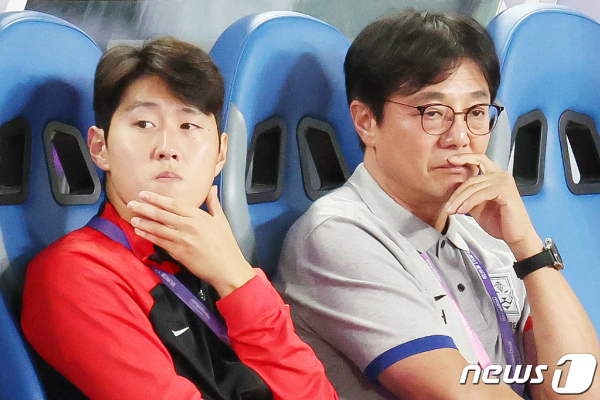 (진화(중국)=뉴스1) 민경석 기자 = 축구 국가대표 이강인이 21일 오후 중국 저장성 진화시 스포츠 센터 스타디움에서 2022 항저우 아시안게임 남자 축구 E조 조별리그 2차전 대한민국과 태국의 경기 시작에 앞서 황선홍 감독과 대화를 나누던 중 생각에 잠겨 있다. 2023.9.21/뉴스1 Copyright (C) 뉴스1. All rights reserved. 무단 전재 및 재배포, AI학습 이용 금지. |