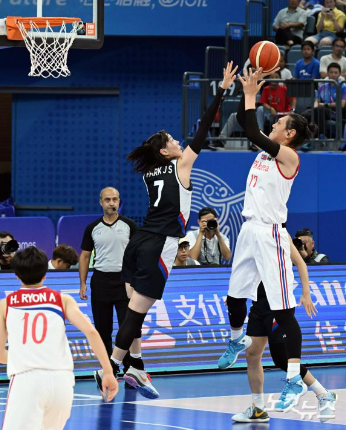 현역 시절 '바스켓 퀸'으로 불렸던 정선민 한국 여자농구 대표팀 감독은 북한의 신장 205cm 장신 센터 박진아를 보고 어떤 느낌을 받았을까.