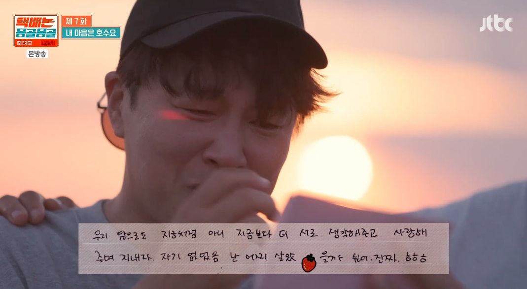특히 차태현은 아내 최석은이 편지를 보냈다는 것을 알고 "나는 못하겠다"며 손사래를 쳤다. 그는 글씨체만으로도 아내라는 것을 알고 눈물을 보였다. 아내는 차태현에게 "내가 요즘 몸이 좀 아파서 자기가 아이들 챙기느라 고생이 많다"고 했고, 차태현 뿐만 아니라 장혁까지 눈물을 쏟았다.
