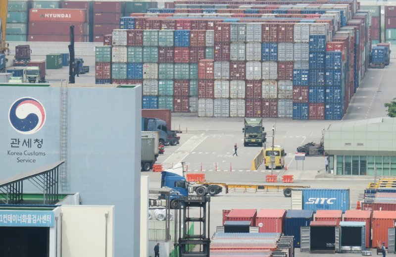 인천 연수구 인천신항 컨테이너 터미널에 컨테이너가 쌓여있다. /사진=뉴시스 |
