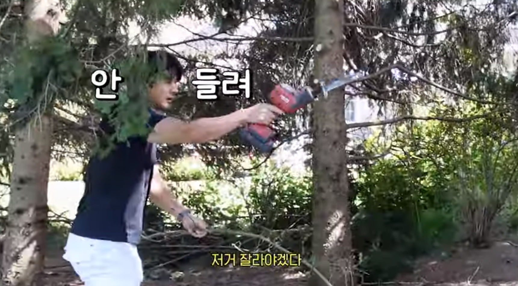 영상 속 권상우는 마당 앞 소나무의 잔가지를 정리했다. 손태영은 "비가 많이 왔는데 솔방울이 막혀서 배수구가 막혀서 물이 샜다. 그래서 살짝 정리를 한다"고 설명했다. 권상우는 "꼭 제가 오면 고장 난다"고 툴툴대면서도 열심히 나무를 벴다.