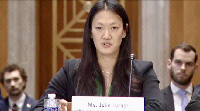 줄리 터너 미국 국무부 북한인권특사 지명자가 5월 17일(현지시간) 미국 워싱턴 D.C. 연방의회의사당에서 진행된 상원 외교위원회 인준 청문회에서 발언하고 있다./상원 외교위 캡처 |