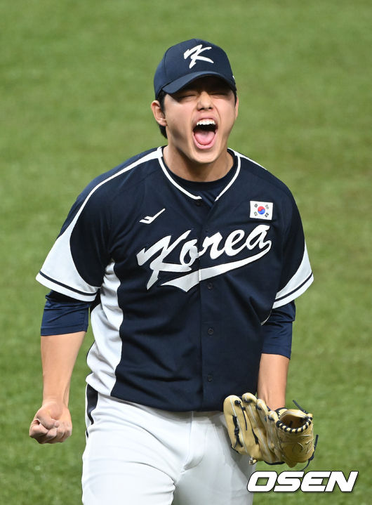 김형준의 좌전 안타와 김성윤의 2루타로 만든 2,3루 찬스에서 상대 폭투로 1점 더 달아났다. 한국은 6회 노시환이 볼넷을 골랐고 문보경이 희생 번트를 성공시켰다. 곧이어 강백호가 좌익수 앞에 떨어지는 안타를 때렸다. 1사 1,3루. 김주원과 김형준이 연속 삼진으로 물러나며 득점으로 연결되지 않았다.