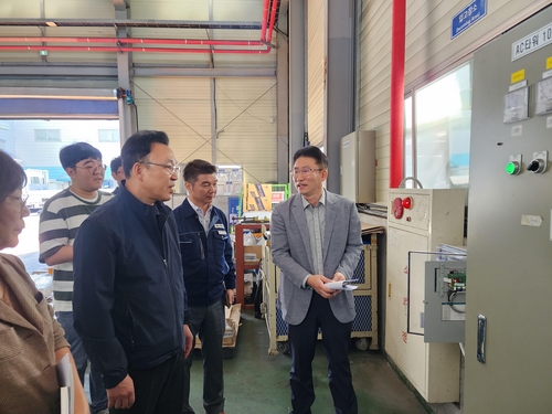 ▲ 최종원 낙동강유역환경청장은 12일 경남 창원시 성산구에 위치한 동진금속 2공장을 방문해 대기오염물질 배출시설 관리 실태를 점검했다. 이번 점검은 소규모 사업장에 대한 사물인터넷(IoT) 측정기기 의무 부착 제도 도입에 따라 진행됐으며 최 청장은 "대기오염물질 관리를 위해 사물인터넷(IoT) 시스템을 적극 활용해달라"고 독려했다. (창원=연합뉴스)
