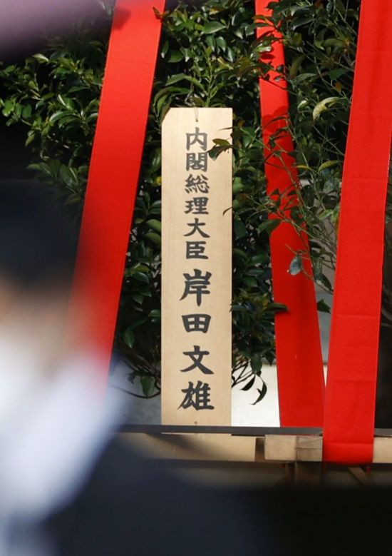 17일 교도통신은 기시다 총리가 이날 시작하는 야스쿠니 추계 예대제(例大祭·제사)에 '내각총리대신 기시다 후미오' 이름으로 '마사카키'를 봉납했다고 보도했다.