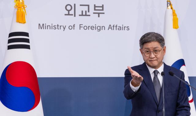 임수석 외교부 대변인이 10일 오후 서울 종로구 외교부에서 열린 정례브리핑에서 질문자를 지정하고 있다. [사진=연합뉴스] |