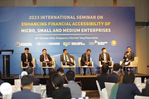 ▲ 주아세안대한민국대표부 한·아세안 금융협력센터는 18일 싱가포르에서 한국과 아세안(동남아시아국가연합) 회원국의 중소기업 금융지원 정책을 공유하는 국제세미나를 개최했다. 싱가포르기업청, 아세안사무국과 공동 개최한 세미나에는 각국 관료들과 아세안 회원국 중소기업 부문 회의체인 아세안 중소기업조정위원회 위원 등 80여명이 참석했다. (방콕=연합뉴스)