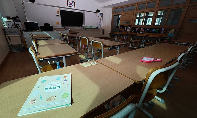 서울 서초구 초등학교에서 숨진 교사의 49재 일인 지난 9월 4일 세종시 한 초등학교 교실이 비어있다. 연합뉴스 |