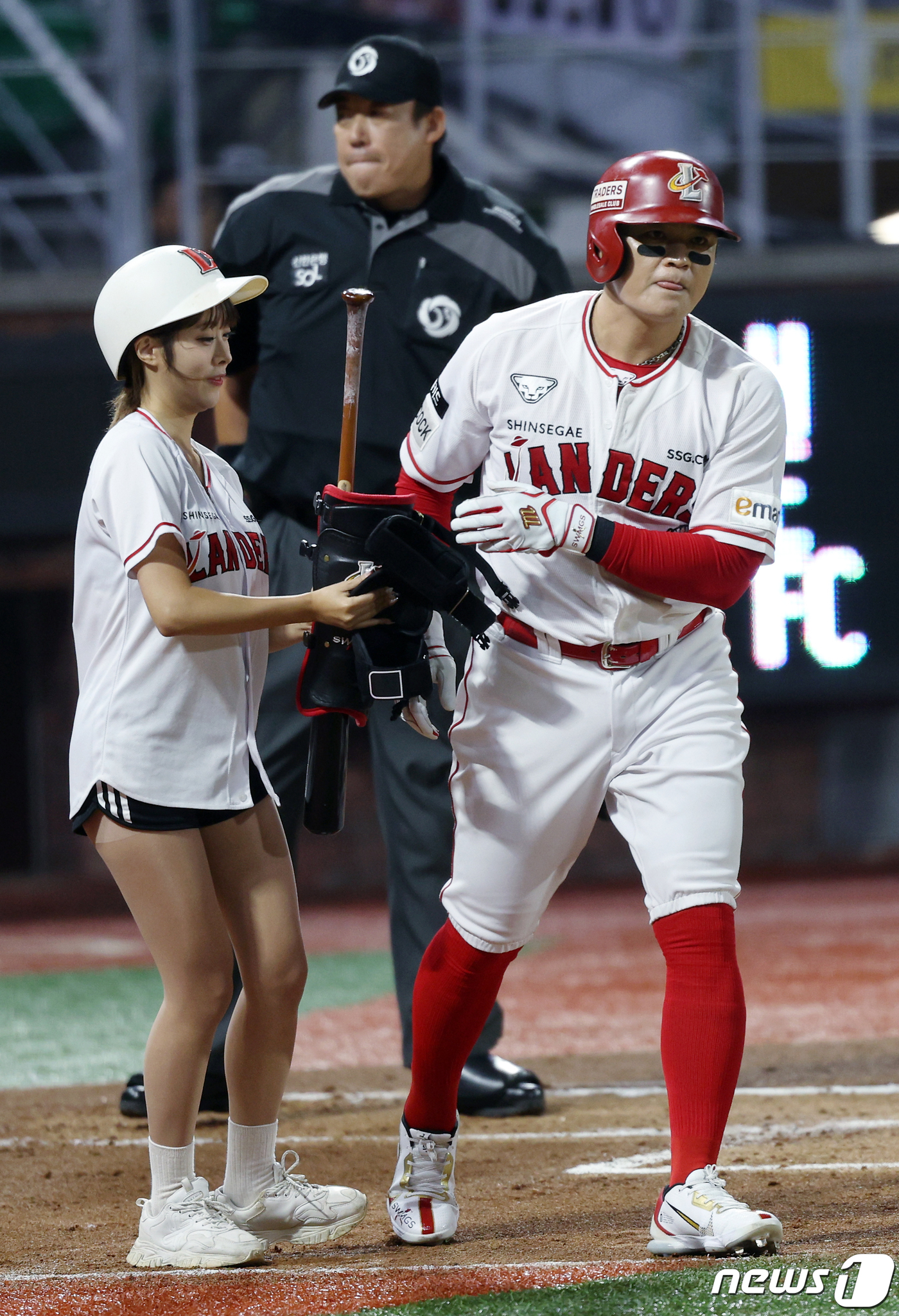 (인천=뉴스1) 박정호 기자 = 23일 오후 인천시 미추홀구 문학동 SSG랜더스필드에서 열린 프로야구 '2023 신한은행 SOL KBO 포스트시즌' 준플레이오프 2차전 SSG 랜더스와 NC 다이노스의 경기 1회말 SSG 선두타자 추신수가 볼넷으로 출루하고 있다. 2023.10.23/뉴스1