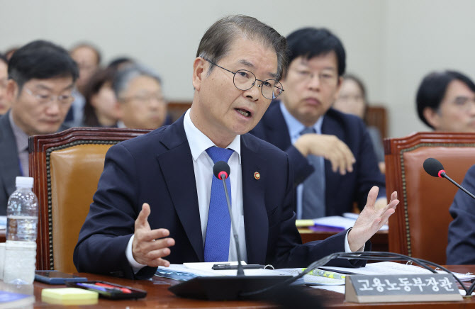 이정식 고용노동부 장관이 26일 서울 여의도 국회에서 열린 국회 환경노동위원회의 고용노동부, 경제사회노동위원회 국정감사에서 의원 질의에 답변하고 있다.(사진=연합뉴스) |