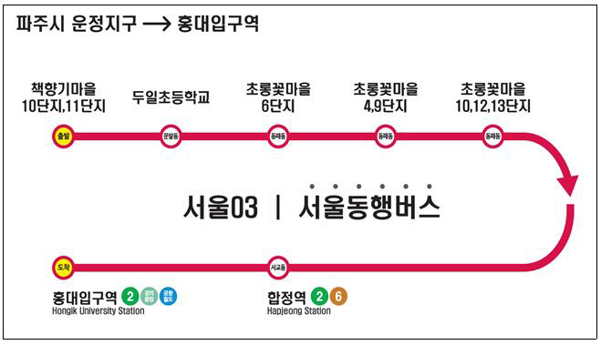 1일 경기 파주시에 따르면 오는 6일부터 운정신도시에서 홍대입구역을 잇는 서울동행버스가 운행을 시작한다.